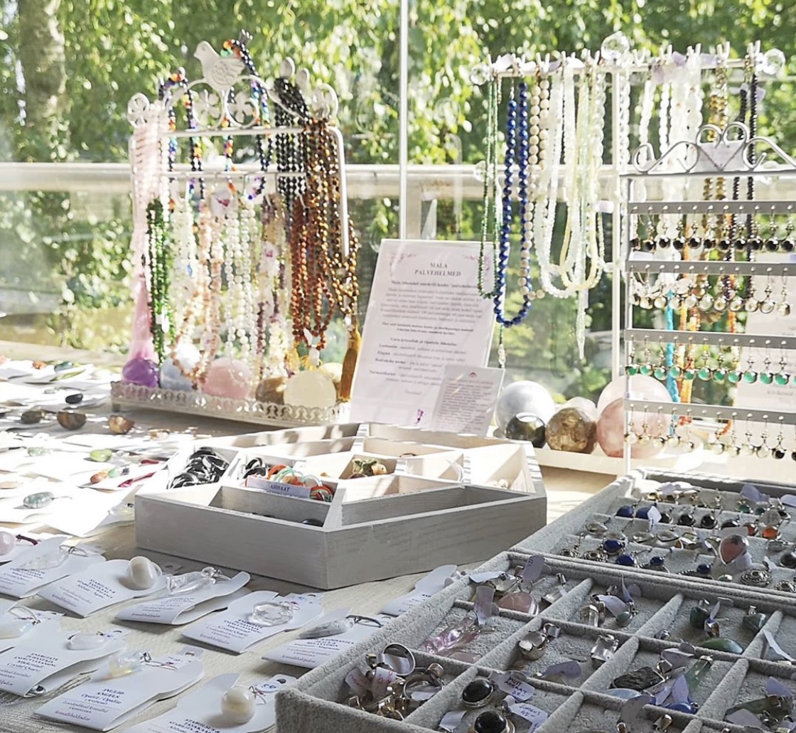 Võid tulla meisterdama omale või sõbrale väekat käevõru või 108 Malat! Meil on sadu poolvääriskividest helmeid ja Maivi juhendab sind kohapeal.