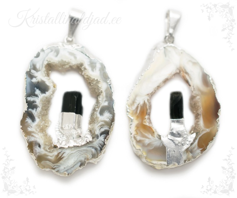 Väikeste kristallikogumitega kvarts geoodina annan kristallile erilise tervendava ja puhastava väe. Turmaliinina kaitsen aurat kahjulike ja negatiivsete energiate eest, ka elektromagnetkiirguse eest. Selle ripatsina olen võimas kaitsetalisman ja energiate tasakaalustaja.